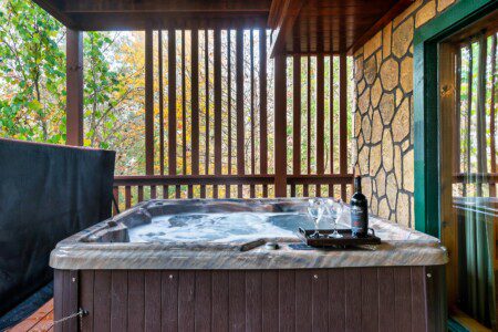Wake up to forest views from your private deck, enjoy a hot coffee as the mist rises over the mountains, and spend your days hiking, shopping, or visiting local parks. In the evening, relax under the stars in your private hot tub or gather for games and family fun inside the cabin.